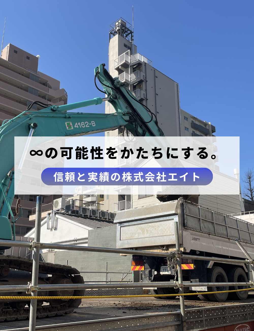 株式会社エイトは、福島県郡山市を拠点に、土地造成工事・根切り工事・外構・解体・太陽光発電事業など、地域の発展と暮らしの基盤づくりに貢献する多彩な工事を手がけています。